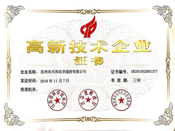興邦擁有經(jīng)驗(yàn)豐富的高水平科研技術(shù)團(tuán)隊(duì),完整的科研管理體系,及完善的科研測(cè)試硬件設(shè)備。良好的軟硬件條件和持續(xù)的科研投入帶來(lái)累累碩果,興邦產(chǎn)品和為客戶提供的配方開(kāi)發(fā)支持獲得客戶一致好評(píng),累計(jì)獲得授權(quán)的發(fā)明專利超13件、實(shí)用新型超4件,累計(jì)參與國(guó)家、行業(yè)及團(tuán)體標(biāo)準(zhǔn)超20項(xiàng)。與此同時(shí),興邦自2016年被首次認(rèn)定為高新技術(shù)企業(yè)以來(lái),已經(jīng)連續(xù)三次順利通過(guò)高企審核。公司技術(shù)研發(fā)中心被認(rèn)定為“蘇州市綠色節(jié)能建筑材料工程技術(shù)研究中心”、“蘇州市企業(yè)技術(shù)中心”、“江蘇省無(wú)機(jī)膠凝材料外加劑工程技術(shù)研究中心”等等。
